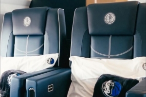 其中飛機的升降梯加上了獨行俠的Logo,飛機上的地毯、座椅進行了升級,然后多處細節(jié)都加上了獨行俠的Logo點綴。