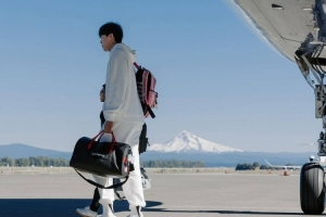 開拓者前往猶他客場登機照 楊瀚森依然背著粉色小書包