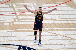 此役,庫里出戰(zhàn)29分30秒,投籃16中7,三分8中4,罰球2中2,得到20分4籃板5助攻1蓋帽。