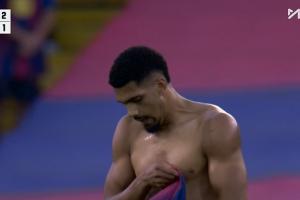 絕殺進(jìn)球瞬間,阿勞霍激情脫衣慶祝,巴薩全隊也陷入瘋狂慶祝中。
