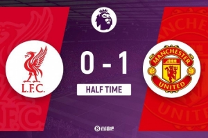 上半場傷停補(bǔ)時4分鐘,半場結(jié)束,利物浦暫0-1曼聯(lián)。