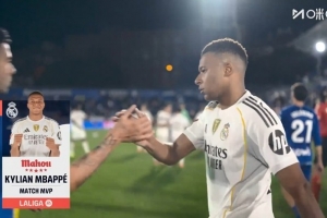 打進(jìn)制勝球!姆巴佩當(dāng)選皇馬1-0赫塔費(fèi)全場(chǎng)最佳球員