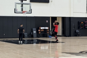 體育資訊10月21日訊 開拓者隨隊記者Sean Highkin曬照,開拓者后衛(wèi)亨德森訓練后單獨進行了投籃練習,楊瀚森的翻譯劉禹鋮(克里斯)在旁邊幫他撿籃板。