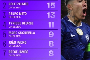 體育資訊10月23日訊 數(shù)據(jù)網(wǎng)站Squawka盤點了2025年切爾西球員各項賽事參與進球榜單,具體如下(進球+助攻):