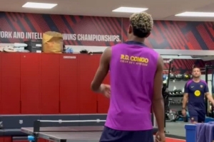 體育資訊10月24日訊 亞馬爾更新社媒動態(tài),曬出與隊內(nèi)門將科亨打乒乓球的視頻。