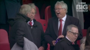 體育資訊10月25日訊 雙紅會中場休息時段,轉(zhuǎn)播鏡頭拍到弗格森給達格利什分享巧克力的畫面。