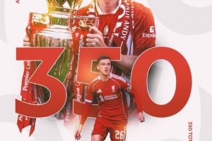 羅伯遜達成利物浦生涯350次出場里程碑,貢獻12球68助攻