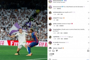 他也在賽后通過社媒曬出同亞馬爾的對(duì)位照,并配文:“這就是皇家馬德里和伯納烏球場(chǎng)!”