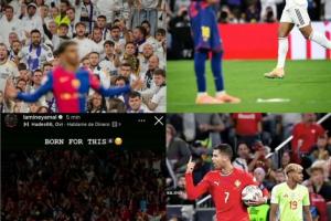 國(guó)家德比賽前,亞馬爾曬客場(chǎng)4-0皇馬照片,最終巴薩1-2不敵皇馬。