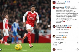 安努斯寫道:“多么美妙的夜晚。為阿森納首發(fā)是夢想成真,我和家人都為我為這家了不起的俱樂部完成正式首秀而感到自豪。感謝上帝賜予我的這個機會,永遠感激這次機遇,并為成功晉級下一輪感到開心。??”