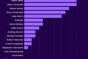 切爾西本賽季英超創(chuàng)造機(jī)會榜: