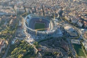 航拍圖像顯示,第三層看臺是改進空間最大的部分。在第二層和第三層看臺之間將設置VIP包廂環(huán)廊,這是新諾坎普球場的重大亮點之一。