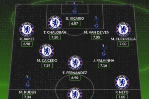 體育資訊11月1日訊 本輪英超切爾西將對陣熱刺。數(shù)據(jù)網(wǎng)站W(wǎng)hoscored也盤點了兩隊球員本賽季英超評分最高陣容,具體如下: