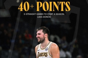 本賽季,東契奇出場三場比賽,他分別拿到了43分、49分和44分。