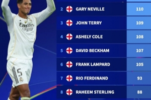 體育資訊11月5日訊 在本輪歐冠,利物浦1-0擊敗皇馬。貝林厄姆完成生涯50場歐冠里程碑,德轉(zhuǎn)也盤點了英格蘭球員歐冠出場次數(shù)榜,具體如下: