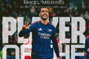 本場比賽梅里諾出任中鋒梅開二度,賽后他也當選阿森納官方評選出的本場比賽隊內(nèi)最佳球員。