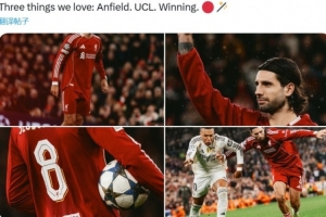 索博斯洛伊?xí)癯鲑悎稣掌?,并配文寫道:“我們熱愛的三件事:安菲爾德、歐冠、勝利?!?/p>