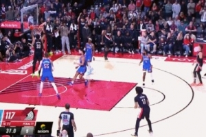 一錘定音!卡馬拉溜底線接球雙手暴扣 開拓者領(lǐng)先5分打停雷霆