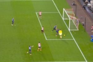 比賽第85分鐘,桑德蘭進(jìn)攻,拉亞撲出布羅比的近距離射門后“脫線”沒(méi)能找到足球,隨后在加布里埃爾的提醒下將球沒(méi)收!