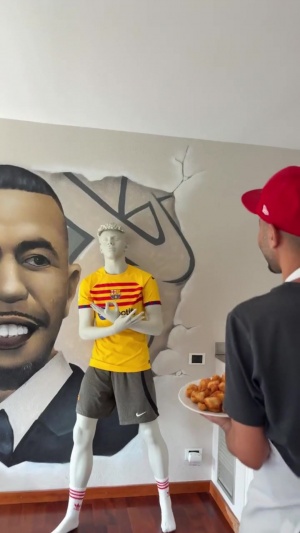 在視頻的最后,鏡頭賺到房間的一面墻,那里擺著一個(gè)亞馬爾標(biāo)志性慶祝動(dòng)作的模型,亞馬爾的父親拿著雞塊說:“嘿,拉明,你還好嗎?我特別愛你,孩子,爸爸愛你。我給你準(zhǔn)備了驚喜,小可愛。等會(huì)兒給你戴上,咱就給大伙兒瞧瞧。我愛你?!?/p>
