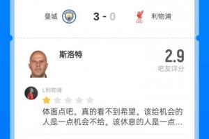凌晨英超第11輪焦點戰(zhàn),利物浦0-3不敵曼城,近6輪英超吞下5場敗仗。利物浦主帥斯洛特本場的戰(zhàn)術(shù)安排,以及不換下薩拉赫的決定再次遭到球迷指責,吧友們給他打出了2.9分的超低分。