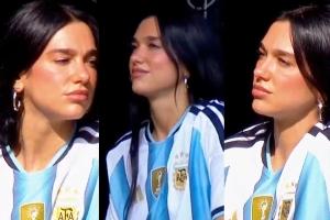 正在阿根廷布宜諾斯艾利斯舉行演唱會的啪姐Dua Lipa現(xiàn)場觀戰(zhàn)博卡青年vs河床的比賽,身著阿根廷最新國家隊(duì)?wèi)?zhàn)袍,并與里克爾梅合影。