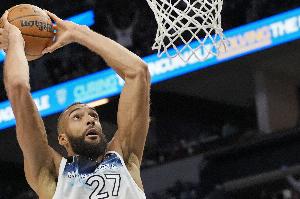 快下很積極!戈貝爾先是大踏步跟進(jìn)雙手暴扣 隨后又快下輕松扣進(jìn)