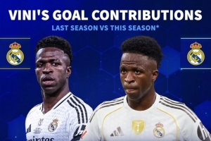 體育資訊11月11日訊 德國轉會市場統(tǒng)計了維尼修斯上賽季和本賽季的數據,這位皇馬前鋒的效率有所下滑。