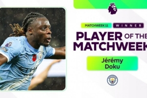 體育資訊11月11日訊 英超官方消息,經(jīng)投票曼城邊鋒多庫(kù)當(dāng)選本輪最佳球員。