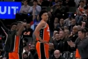 GIF-喬丹·米勒助攻科比·桑德斯三分打停掘金