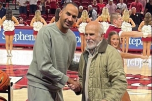 今天他現(xiàn)身NCAA賽場(chǎng),觀戰(zhàn)阿肯色大學(xué)vs桑福德大學(xué)的比賽。