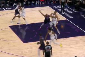 滑稽!戈貝爾自信背打約基奇 撞了一下直接丟球了
