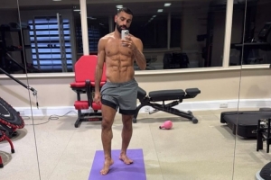 照片中的薩拉赫,身材相當健碩,腹肌棱角分明。