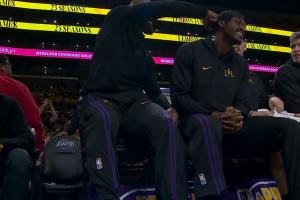 0分1助!詹姆斯打了五分半下場休息 與范德彪嬉戲打鬧