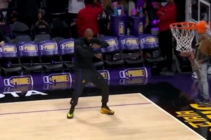 詹姆斯賽前天勾命中 原地扭動跳起搖手舞
