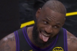 嗨了!詹姆斯第10個助攻打停爵士之后吐舌頭&大笑慶祝
