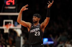 本場(chǎng)比賽,太陽(yáng)球員喬丹·古德溫表現(xiàn)出色,雖然身高只有1.91米,但籃板球上雙并且有4個(gè)前場(chǎng)籃板,在33分鐘的時(shí)間里,投籃15中7,三分球5中1,拿到15分10籃板3助攻1搶斷的數(shù)據(jù),正負(fù)值+11。