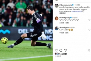 皇馬門將庫爾圖瓦社媒曬出比賽照片,配文:“昨天我們拼盡全力,但未能贏得勝利,我們會吸取教訓(xùn),繼續(xù)前進。”