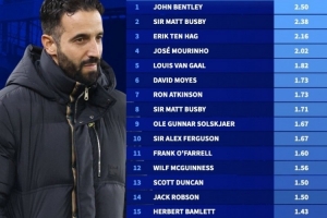 體育資訊11月25日訊 《轉(zhuǎn)會市場》統(tǒng)計了阿莫林執(zhí)教第一年在老特拉福德的場均拿分情況,1.43分僅能位列隊史第16位。