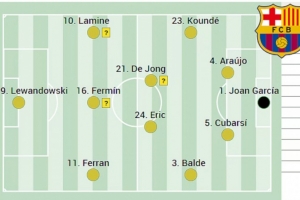 體育資訊11月25日訊 北京時間明天凌晨4點,巴薩將在歐冠聯(lián)賽階段第五輪比賽中客場對陣切爾西,西班牙媒體《阿斯報》預測了巴薩此役的首發(fā)陣容。