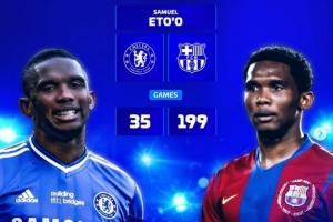 埃托奧:切爾西35場(chǎng)、巴薩199場(chǎng)