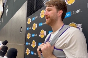 體育資訊11月26日訊 今日湖人新簽的雙向合同球員德魯·蒂米在球隊訓(xùn)練接受接受了媒體采訪。
