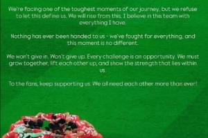對(duì)于球迷們,請(qǐng)繼續(xù)支持我們。我們比任何時(shí)候都更需要彼此的力量!