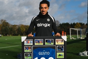 此役是古斯托為切爾西出戰(zhàn)的第100場比賽,他總計打進1球,助攻14次。古斯托獲贈藍軍生涯百場紀念球衣,切爾西社媒曬出他與紀念球衣的合照。