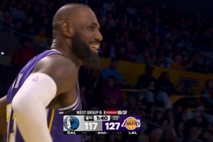 一錘定音!東契奇長傳送助攻 詹姆斯空位三分將分差拉開到兩位數(shù)