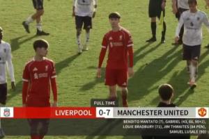 體育資訊11月29日訊 在剛剛結(jié)束的一場英超U18聯(lián)賽中,曼聯(lián)U18以7-0大勝利物浦U18。