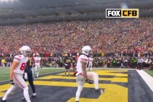 體育資訊11月30日訊 今日俄亥俄州立大學(xué)橄欖球隊外接手布蘭登·伊尼斯在對陣密歇根大學(xué)的比賽中完成達(dá)陣。