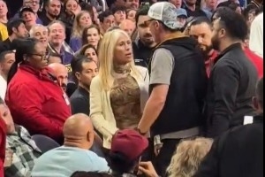 有球迷曬出視頻,昨日比賽中,有一位坐在湖人板凳席旁邊的女球迷疑似在不斷騷擾湖人球員,被多名保安強(qiáng)制請出場外。