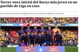 這套陣容包含三名18歲的拉瑪西亞青訓(xùn)球員:亞馬爾、伯納爾和庫巴西。此外,22歲的卡薩多、22歲的巴爾德、23歲的赫拉德·馬丁、24歲的埃里克·加西亞和24歲的霍安·加西亞也均未滿25歲。