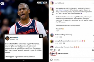 在為這支表現(xiàn)不佳的球隊奉獻了職業(yè)生涯一半的時間后,克里斯·保羅本打算回到快船隊,以一個完美的賽季結(jié)束自己的籃球生涯。然而,在賽季開始僅一個月后,這位即將退役的老將卻在深夜被球隊“送回家”。這一舉動引發(fā)了球迷的強烈不滿,有球迷在推特上直言:“快船管理層的行為簡直是犯罪?!?/p>
